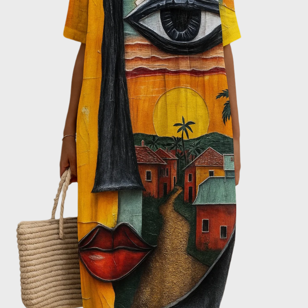 Sára Elegantní Šaty Abstraktní Tváře UměleckéhoStylu