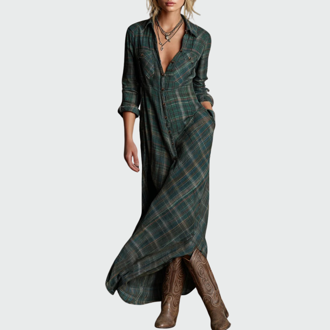 Soraya | Dlouhé zelené kostkované šaty