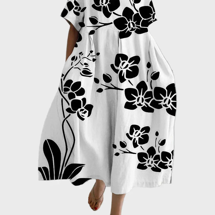 Magdaléna Elegantní Maxišaty Volné Uměleckým Potiskem