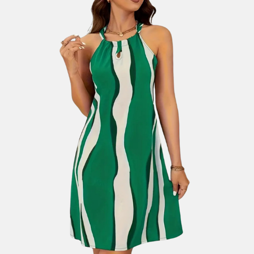 Olga | Šaty s krátkým zavazováním za krk, odhalenými zády a pruhovaným vzorem