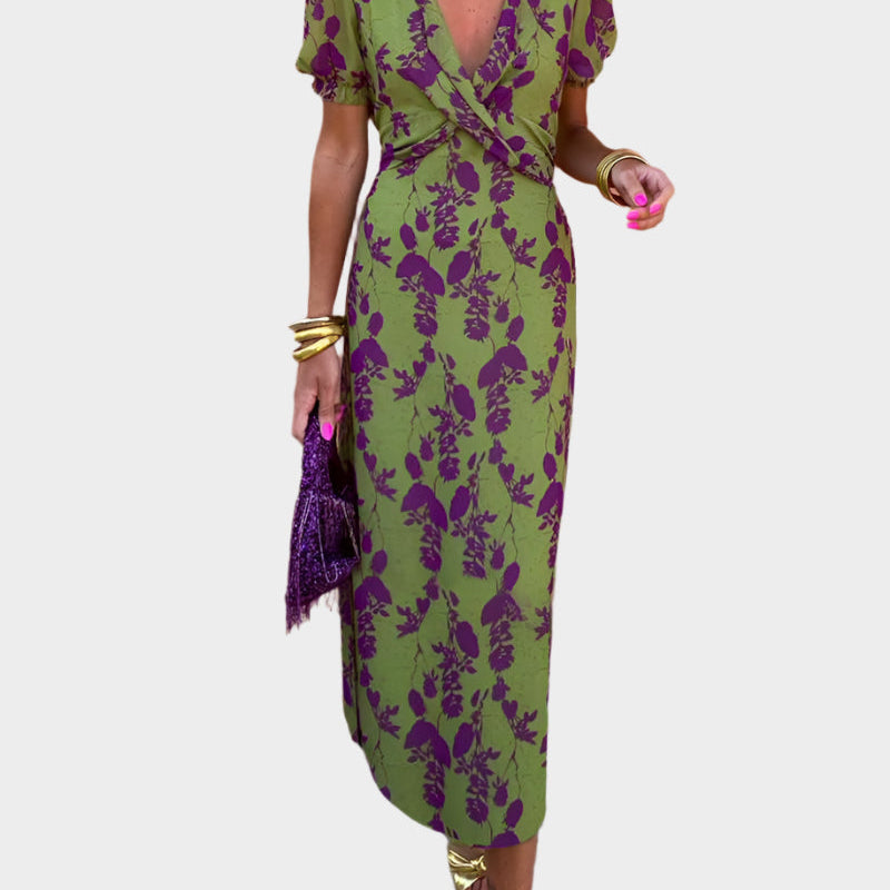 Jolanta | Elegantní šaty s výstřihem do V a výraznými rukávy