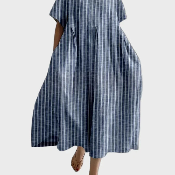 Marie Elegantní Lehoučké Tmavomodré Kostkované Šaty
