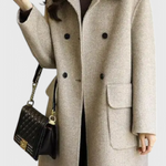 Přepracujte zimní šatník s nadčasovým půvabem našeho klasického dvouřadého vlněného kabátu. Vyrobený z prémiové vlněné směsi spojuje tento dlouhý střih uhlazenou strukturu s moderní funkčností. Perfektní pro vrstvení přes každodenní i slavnostní outfity, je vaším spolehlivým kabátem pro vytříbené teplo a nenápadnou eleganci.