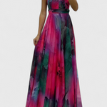 Caprice | Maxi šaty z gázoviny s květinovým potiskem a halter výstřihem
