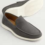S hlubokým šedým tónem a měkkým, semišovým povrchem nabízejí tyto loafers diskrétní eleganci, která bez námahy přechází z dne do večera.
