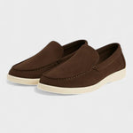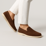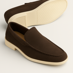 Pohodlné a elegantní mokasíny v čokoládově hnědém semišovém materiálu. Design na slip-on s kulatou špičkou, nízkým podpatkem a flexibilní podrážkou. Vyrobeno z veganských materiálů s nízkou údržbou. Ideální pro každodenní nošení, do kanceláře nebo na cesty.