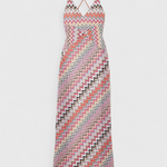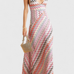 Ikonický styl, který okouzlí každým vláknem. Šaty Francia oživují živou esenci cikcak pruhů v multibarevném úpletu se třpytivými metalickými nitěmi. Hluboký výstřih do V a překřížená ramínka na zádech vytvářejí dokonalou rovnováhu mezi smyslností a sofistikovaností, zatímco dlouhá splývavá sukně dodává éterický pohyb.