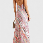 France | Vícebarevné pletené dlouhé šaty s hlubokým výstřihem do V a překříženými zády