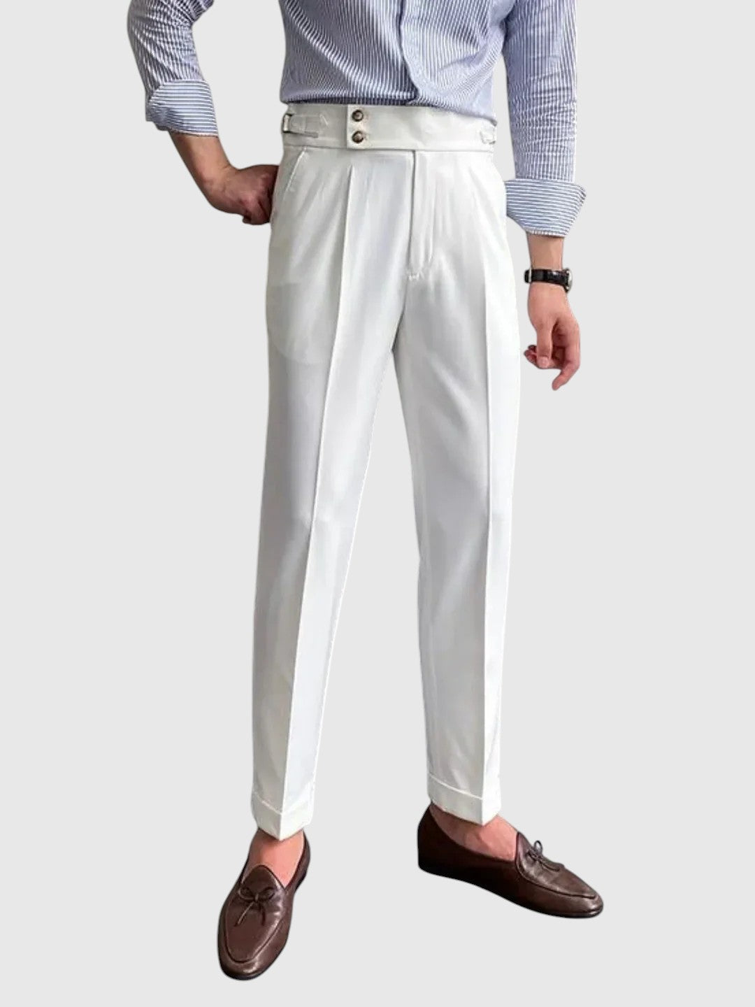 Kalhoty Moritz Vintage byly navrženy pro muže, kteří ocení styl inspirovaný dědictvím s rafinovaným nádechem. Vyrobeny z vysoce kvalitní tkaniny, nabízejí pohodlný, ale strukturovaný střih - ideální pro elegantní ležérní vzhled, sofistikované každodenní oblečení nebo soupravy inspirované vintage stylem.
