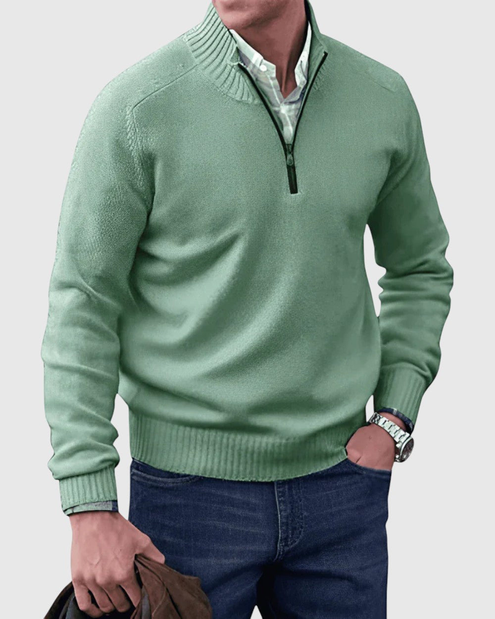 Kardigan s zipem je ideální pro muže, kteří hledají rovnováhu mezi teplem, pohodlím a moderním stylem. Vyroben z měkké a prodyšné látky, nabízí uvolněný, ale upravený vzhled - ideální pro vrstvení, neformální procházky nebo příležitosti smart-casual.