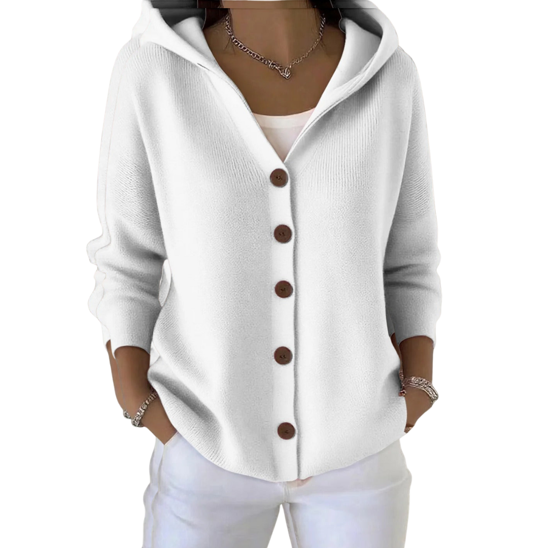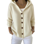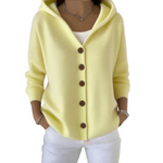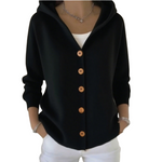 Tento kardigan je ideální kombinací praktičnosti a elegance. Je vyroben z měkké tkaniny příjemné na dotek a nabízí dokonalou rovnováhu mezi pohodlím a moderností. Díky funkční kapuci a elegantním knoflíkům se snadno přizpůsobí různým příležitostem – ať už jde o pohodový den, nebo doplnění stylového outfitu.