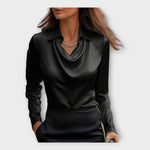 Lucie Elegantní Saténová Halenka Okamžitá saténová elegance Saténová halenka s vodopádovým výstřihem kombinuje sofistikovaný styl, lichotivý střih a maximální pohodlí. Jemný satén padne na postavu, poskytuje snadné nošení a univerzální použití pro denní i slavnostní příležitosti. Co dělá tento produ
