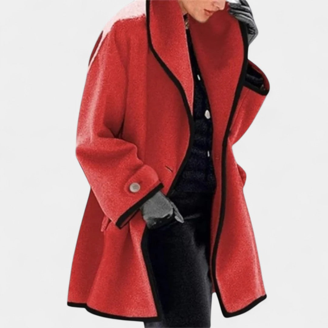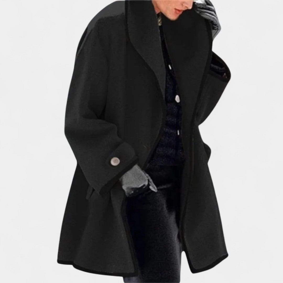 Kabát Magda je dokonalým spojením elegance a funkčnosti pro chladné dny. Jeho dlouhý, volnější střih z kvalitní vlněné směsi poskytuje hřejivost a maximální pohodlí, zatímco kontrastní lemy dodávají celkovému designu moderní a sofistikovaný vzhled. Ideální kousek, který doplní váš šatník pro zimní sezónu.