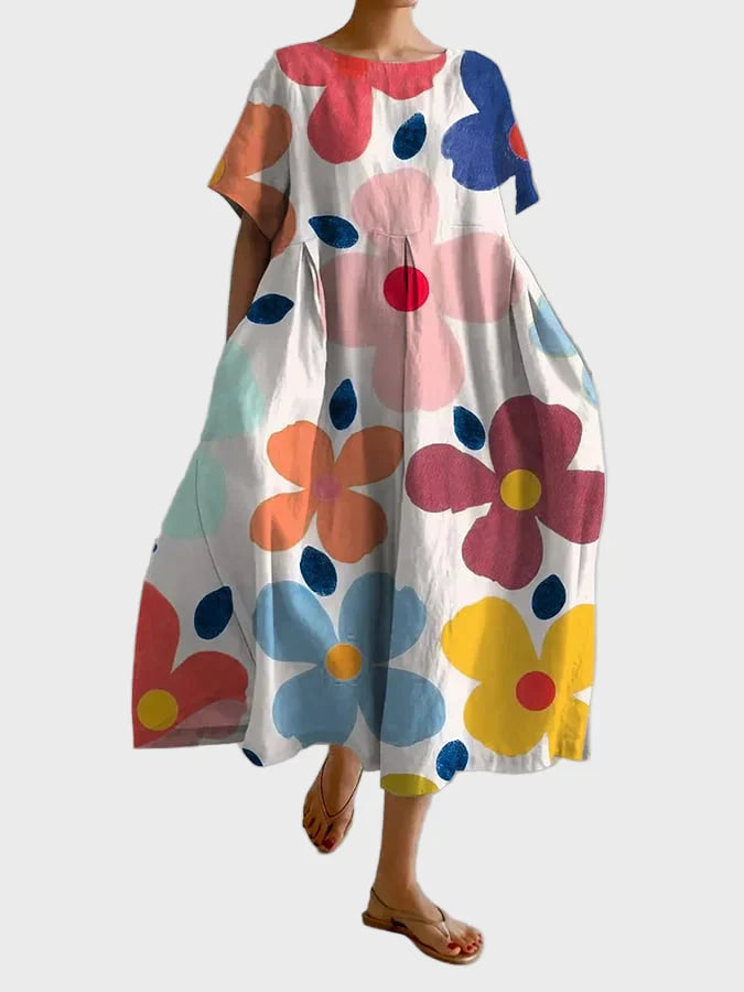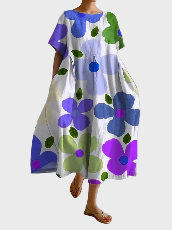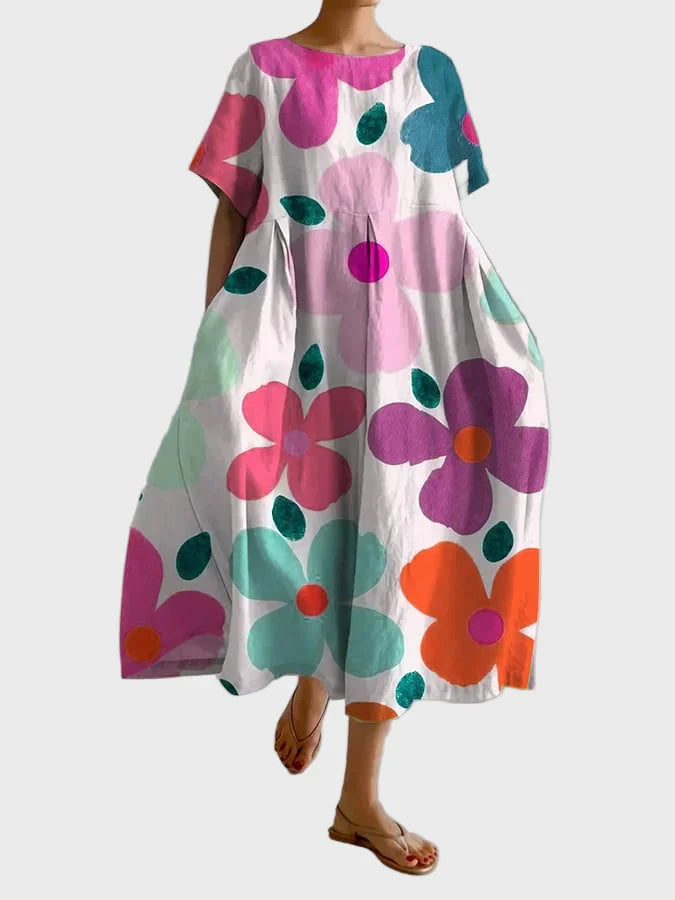 Magdaléna Impozantní Dlouhé Květinové Oversize Šaty