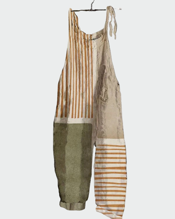 Retro elegance pro každý den Magdaléna sofistikovaný retro overal s širokými nohavicemi nabízí moderní střih, pohodlné nošení a nenucenou eleganci. Geometrické pruhy dodávají dynamiku, střih lichotí postavě a snadno se přizpůsobí všem příležitostem. Co dělá tento produkt tak výjimečným: Dokonalý stř