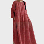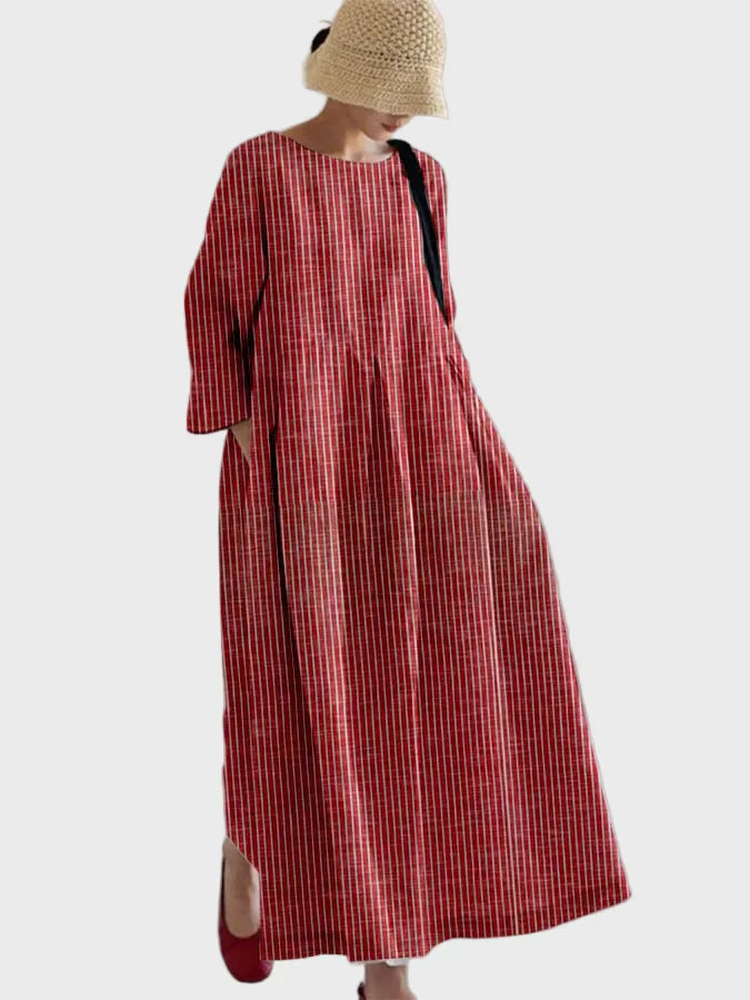 Markéta Elegantní Červené Šaty Tříčtvrťové Svislepruhované