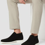 Pánské semišové loafers boty – Slip-On Chukka styl, plochý podpatek – Černé