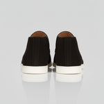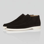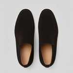 Pánské semišové loafers boty v jednobarevném černém semiši. Navrženo v siluetě slip-on chukka s kulatou špičkou a plochým podpatkem. Jednoduchá a univerzální volba pro každodenní nošení.