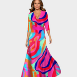 Sára Romantika Midi Romantika v každém kroku Sofistikované midi šaty Sára s V‑výstřihem a 3/4 rukávy nabízejí pohodlné nošení, lichotivý střih a univerzální styl vhodný na denní i večerní příležitosti. Co dělá tento produkt tak výjimečným: Umělecký vzor - Akvarelový květinový motiv dodává šatům jemn