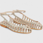 Sofica | Stříbrné sandály s kulatou špičkou a kotníkovým páskem