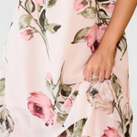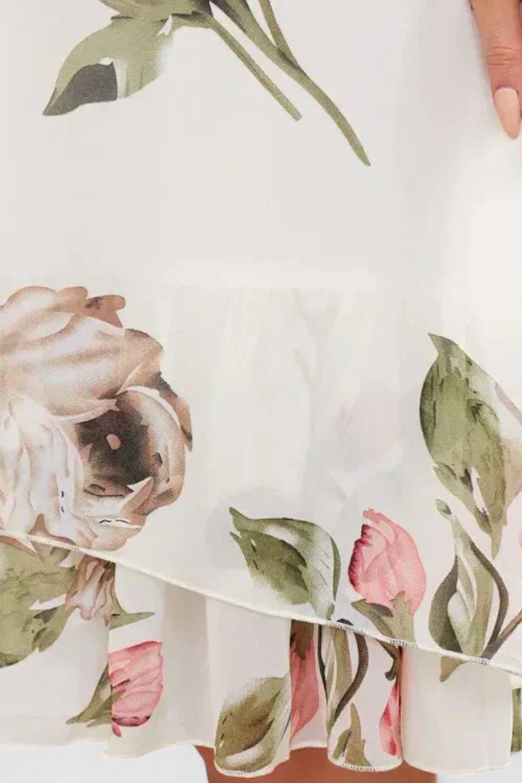 Éterická lehkost s designem, který jemně a svěže objímá ženskost. Šaty Tameka spojují splývavou kvalitu šifonu s jemným potiskem okvětních lístků a vytvářejí romantickou a zahalující siluetu. Průsvitné rukávy a křížený výstřih dodávají jemný dotek, který se pohybuje ladně a přirozeně.