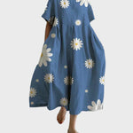 Věnceslava Elegantní Modré Šaty Bílými Kopretinami