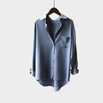 Veronika Elegantní Elegance pro každý den Klasická košilová blůza s moderním detailem a kontrastním límcem nabízí ladný střih, pohodlí a snadné vrstvení. Přiléhá přirozeně, nechává volnost pohybu a hodí se do práce i na společenské události.