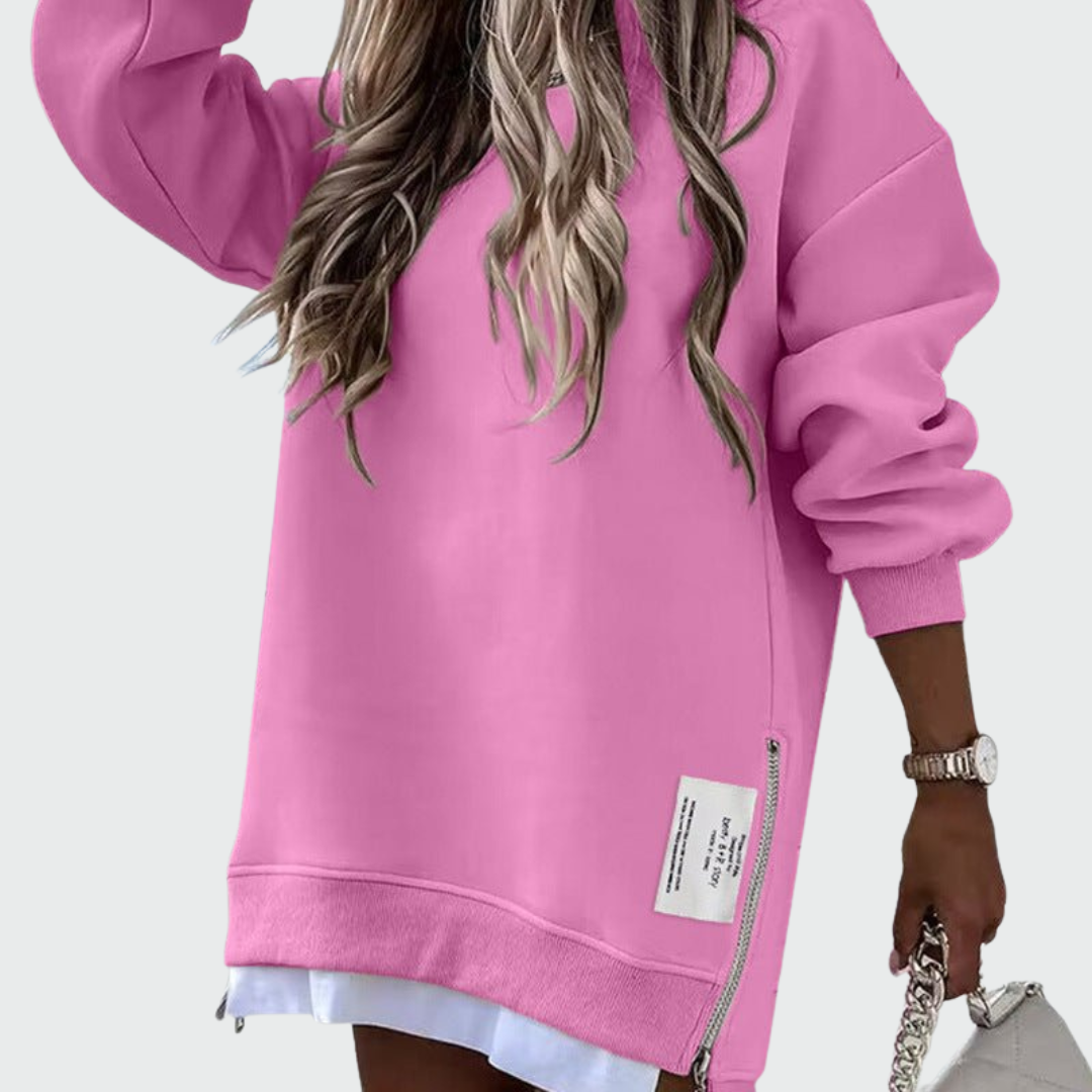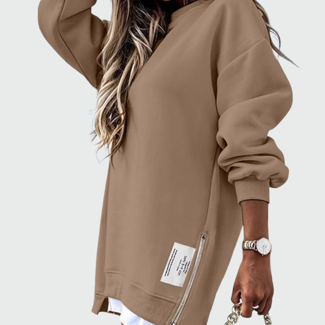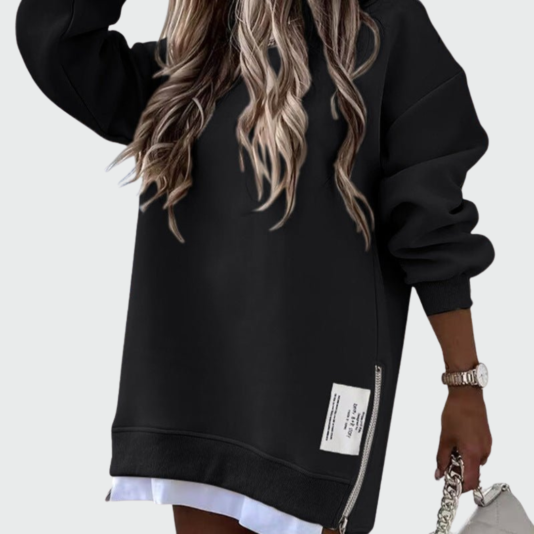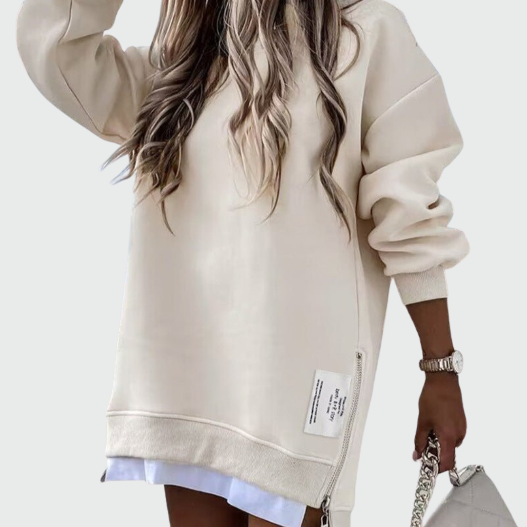 Objevte krásu jednoduchosti s tímto kouskem, který spojuje pohodlí s moderním stylem. Oversize střih a čisté linie vytvářejí ležérní, ale sofistikovaný vzhled, ideální pro každodenní nošení. Boční zip a designová visačka dodávají módní nádech, zatímco jemný materiál vás bude hýčkat po celý den. Skvělá volba pro ženy, které chtějí být stylové bez zbytečného přehánění.